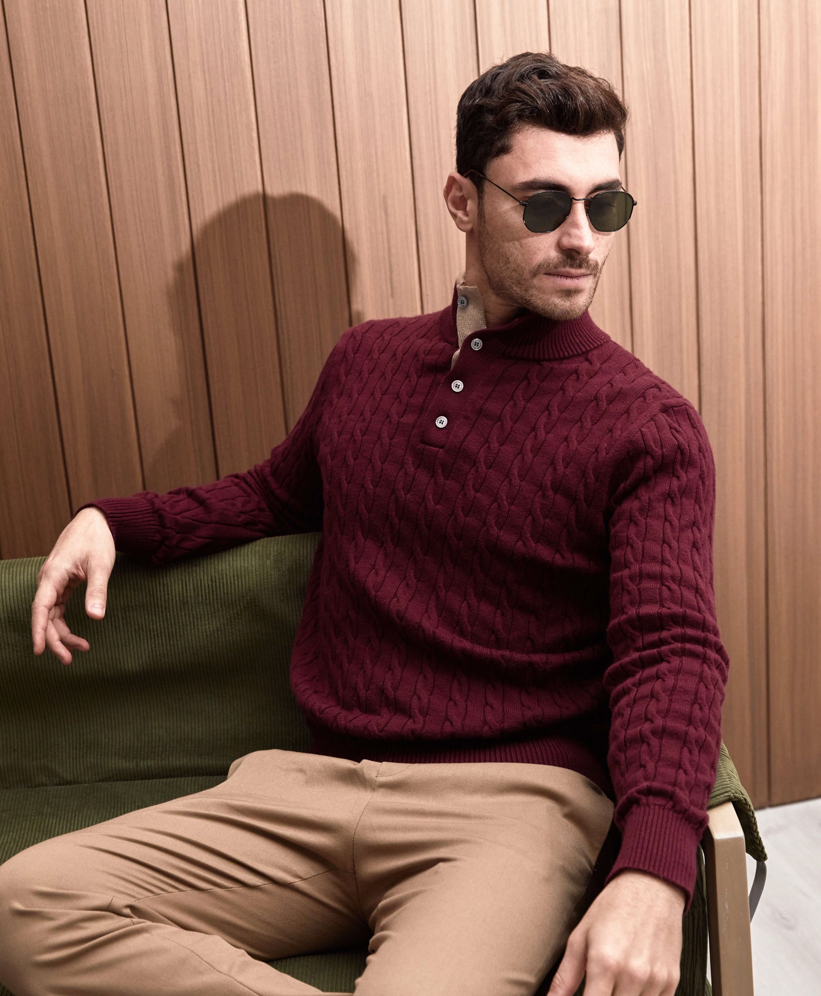 Crafted with a premium blend of high-quality wool and cotton fibers, this sweater exudes a rich and soft texture that gently envelops the body, delivering a cozy embrace that transcends seasons. The artful combination of wool and cotton ensures optimal insulation and breathability, making it a versatile choice for both cool evenings and chilly winter days, embodying a perfect fusion of practicality and refined style.