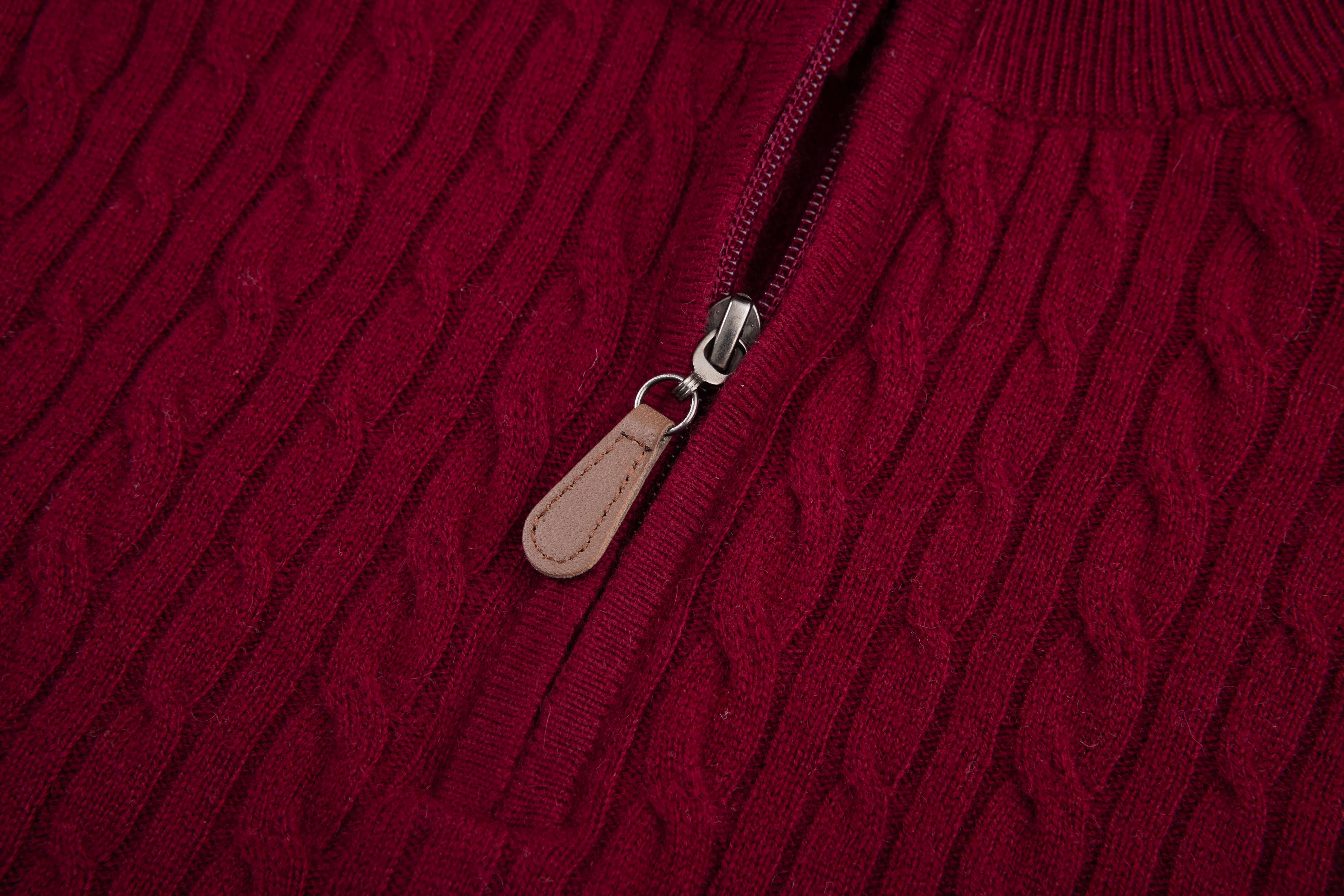 Burgandy Cashmere Blend Half Zip Sweater